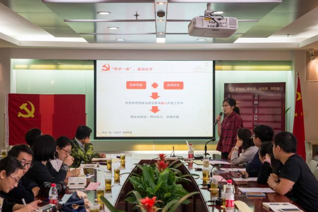 组织生活由宣传部党支部书记虞晨洁主持。她谈到,“两学一做”学习教育是继党的群众路线教育实践活动、“三严三实”专题教育之后,深化党内教育的又一次重要实践,是推动党内教育从“关键少数”向广大党员拓展、从集中性教育向经常性教育延伸的重要举措。根据中央相关文件要求和学校“两学一做”学习教育的统一部署,宣传部党支部结合部门党建工作实际,着重从“学”“做”“评”三方面重点推进相关学习教育,并积极探索专题组织生活建设等内容,进一步强化支部战斗堡垒作用。她认为,作为一名机关党员,不仅要以身作则,将“两学一做”落细落实,更要与岗位工作有机结合,立足本职,发挥党员先锋模范作用,努力做出机关党员应有的担当,起表率榜样作用。