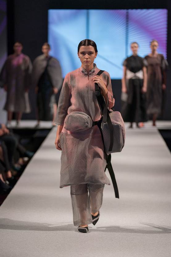 “创新力量:SCF学院优秀毕业生作品秀”,通过廓形、面料与色彩的综合演绎,不仅展现出中国新生代设计师们丰富的专业知识背景与技巧运用的能力,更体现出他们对社会人文、城市发展和技术工艺的关注与思考。